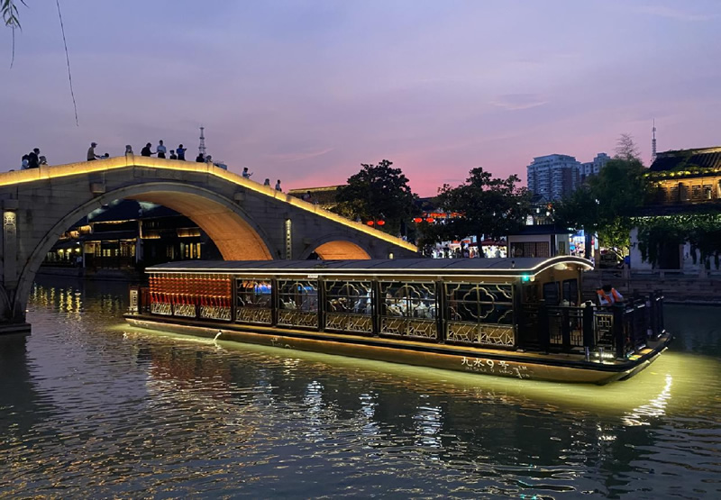 該船外觀及內飾緊緊圍繞“紅船魂? 江南韻 ? 運河情?國際范”的主題展開,整體采用仿古木藝的中式裝修風格,充分彰顯嘉興江南水鄉(xiāng)、的文化魅力。